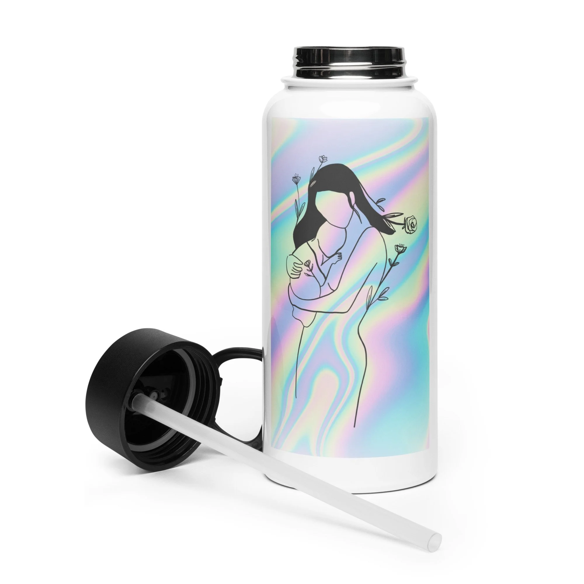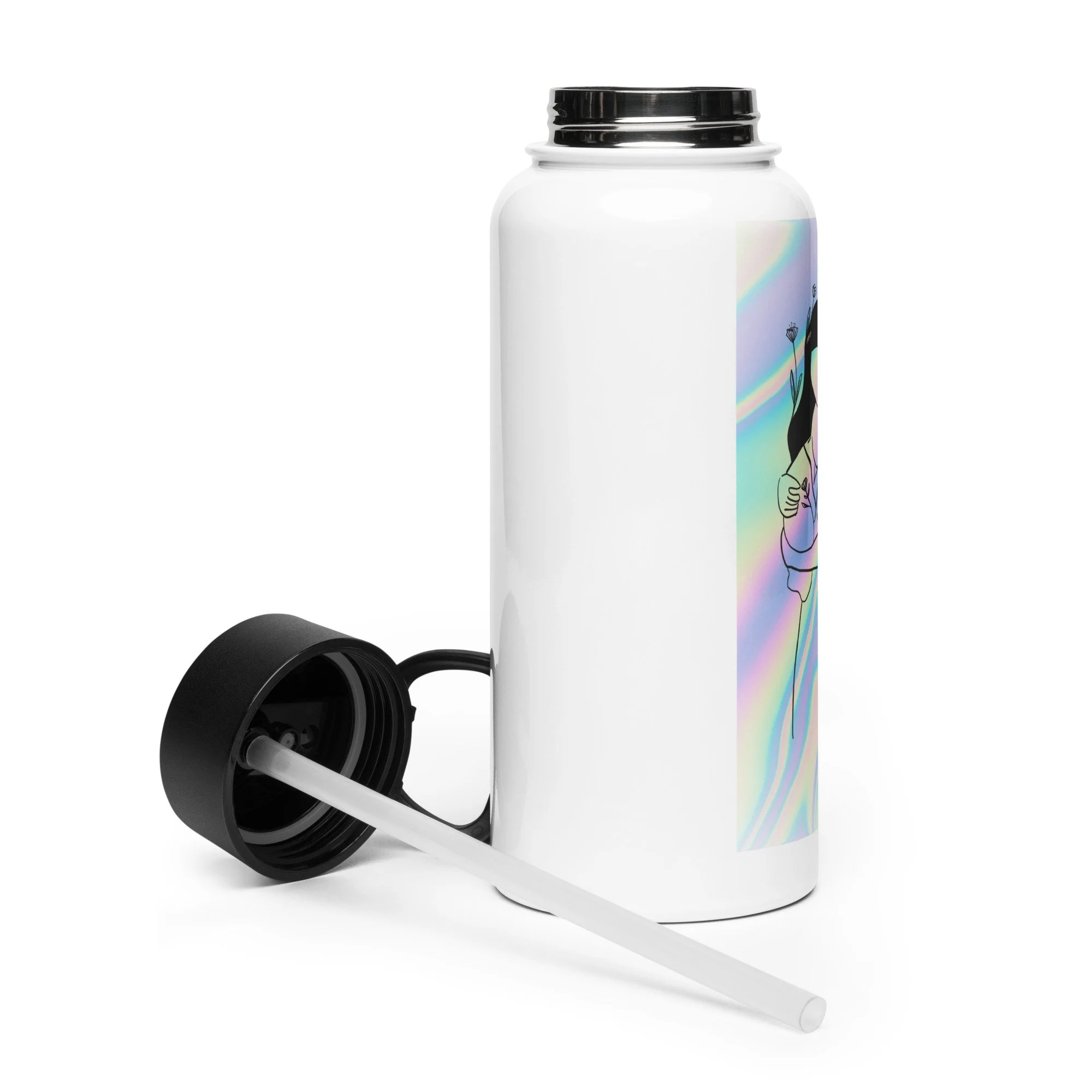 Stainless steel water bottle with a straw lid