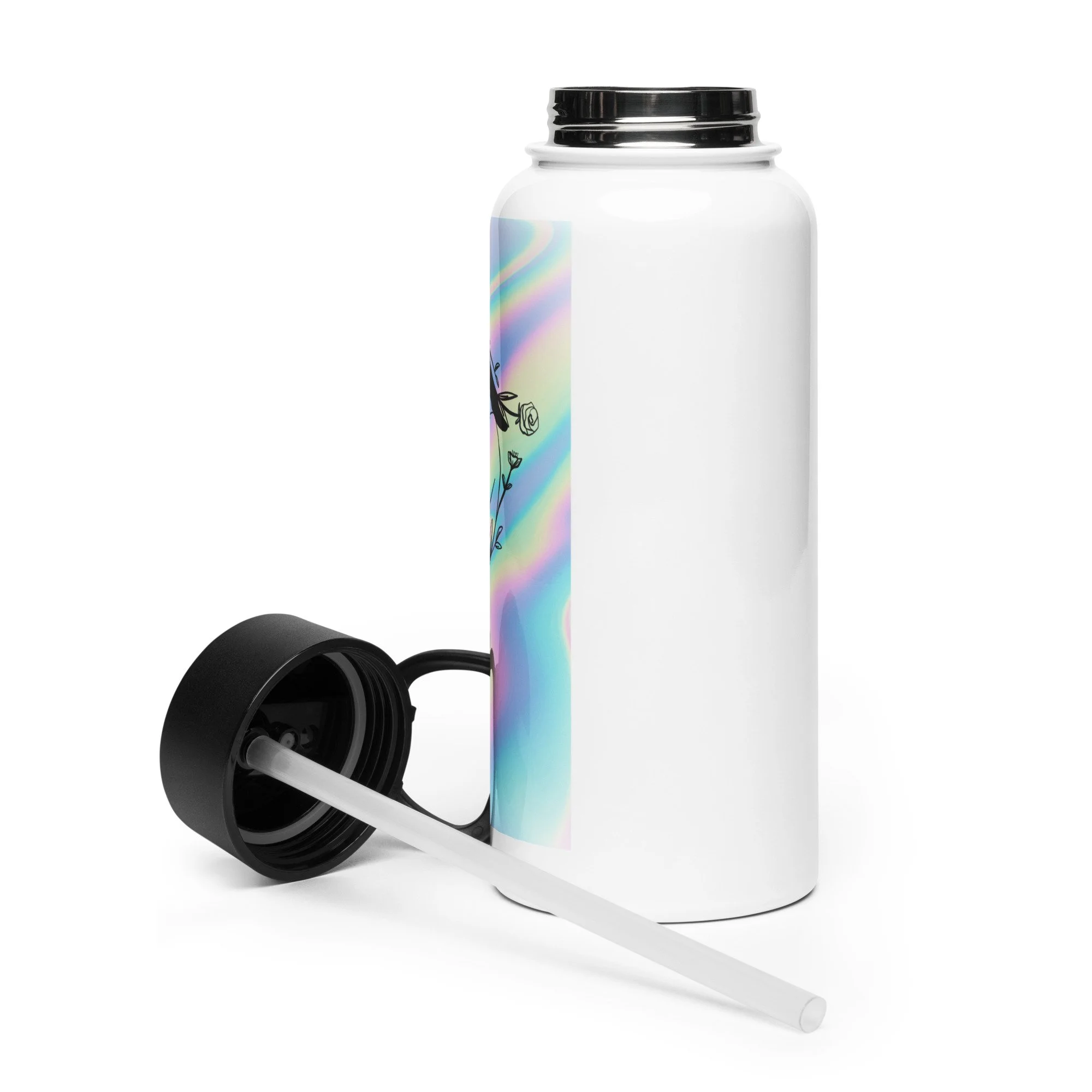 Stay hydrated all day with this 32 oz (950 ml) water bottle. It’s ideal for workouts or busy days, with a wide-mouth foldable straw for spill-free sipping and a rotating handle for easy carrying.